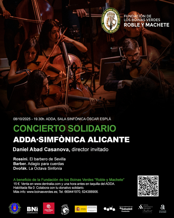 El próximo 8 de octubre, la Fundación Roble y Machete celebra un concierto solidario en la ADDA (Auditorio de la Diputación de Alicante), con la participación de la ADDA·Simfònica Alicante bajo la dirección del maestro Daniel Abad Casanova.